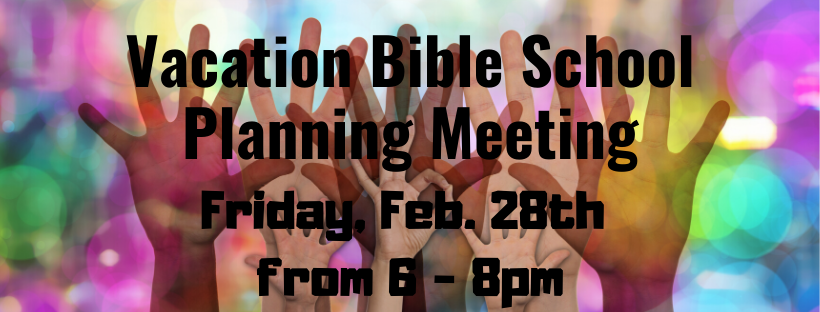 We’re getting the ball rolling on VBS in August by starting the planning process in February. The meeting will be Friday, Mar. 11th at 6pm. My goal for this meeting is to focus on designing each day of VBS!