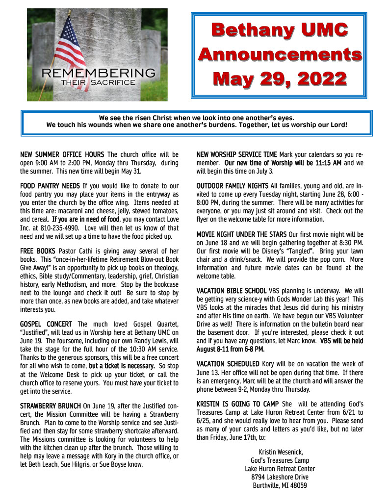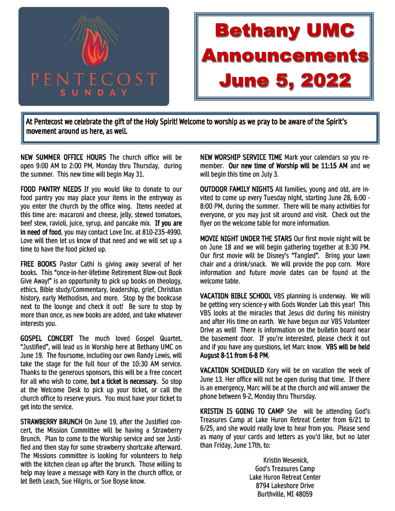 On Sunday July 3, 2022, we held worship at our NEW time: 11:15am. We also were joined for the first time by Rev. Kayla Roosa, our new pastor. Pastor Kayla led the pastoral prayer and served Holy Communion. Elizabeth Whiting who is usually behind the scenes in the sound booth delivered our message as she reflected on what she has learned from observing intently the birds. If you missed worship, catch up by watching below: