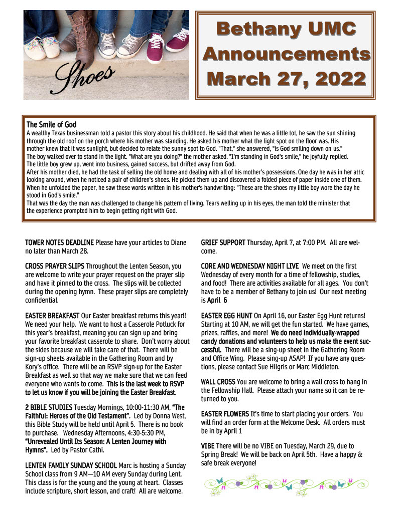 Did you miss worship on Sunday March 27th? Here’s the announcement sheet and scroll down to watch worship!